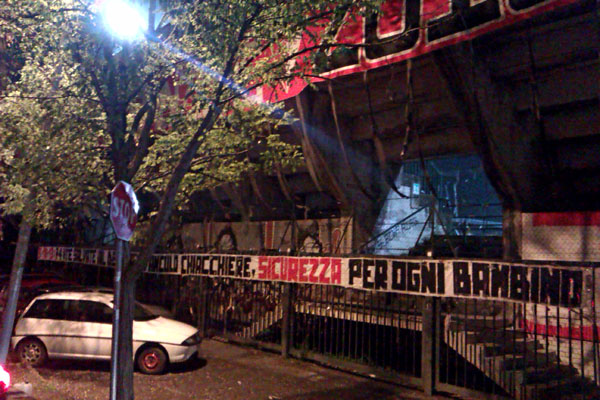 Quello che è successo giovedì scorso alla scuola materna di Piano d’Accio è qualcosa d’inaudito che non può in nessun modo lasciarci indifferenti. Questioni di tempo, di benevolo destino, che hanno fatto sì che non si consumasse una tragedia: fortunatamente i bambini erano usciti tutti da scuola, fortunatamente quella scuola era vuota. Non instaureremo processi mediatici, non siamo marionette, pennivendoli del sistema, non abbiamo copie di giornale da vendere. Non cavalcheremo l’onda emozionale di una tragedia scampata, come fanno certe iene, sciacalli di cadaveri, non dobbiamo vincere le elezioni. Gli uomini sanno assumersi le proprie responsabilità; che i soggetti chiamati ad amministrare questa città non fossero uomini non lo scopriamo certo oggi. Nessuno è responsabile! Come al solito, va in scena il più classico scarica barile!! E adesso chi dovrebbe fare luce su chi? Quel tribunale e quella sbirraglia da sempre complici degli stessi poteri forti sui quali adesso dovrebbero indagare? Impegnati come sono, da sempre, nel reprimere ogni voce di dissenso che si oppone al potere stesso. Sappiamo come finirà o, peggio, come sarebbe potuta finire anche in caso di una ben più grave tragedia: L’Aquila è qui a due passi e il silenzio dalle aule dei tribunali regna sovrano, nessuno ha pagato, nessuno è responsabile di aver costruito case con la sabbia di mare. Nelle aule dei tribunali gli imputati sono quei cittadini che chiedevano giustizia e verità, che forzavano la zona rossa. I colpevoli per questi signori stanno sempre da una parte sola, la parte che non gira il proprio sguardo di fronte ad abusi ed ingiustizie, che non fa scivolare sulla propria pelle e in silenzio tutto ciò che accade. Abbiamo detto prima quello che non siamo, perché noi siamo gli Ultras del Teramo ed amiamo la nostra città e la nostra terra, la viviamo e la difendiamo ogni giorno, nelle strade. Conosciamo bene la loro ipocrita giustizia, falsa e amara, come le loro chiacchiere, per questo diciamo con forza a costoro che non avvenga più quello che è avvenuto giovedì, che non si scherzi più sulla pelle dei cittadini, a maggior ragione su quella dei nostri bambini, i figli di questa terra. In caso contrario farebbero bene, questi personaggi, a scomparire alla velocità della luce assieme alle loro ipocrite lacrime di coccodrillo… fareste meglio ad allontanarvi il più possibile da questa terra, perché non ci sarà sbirraglia che tenga alla nostra rabbia! |
