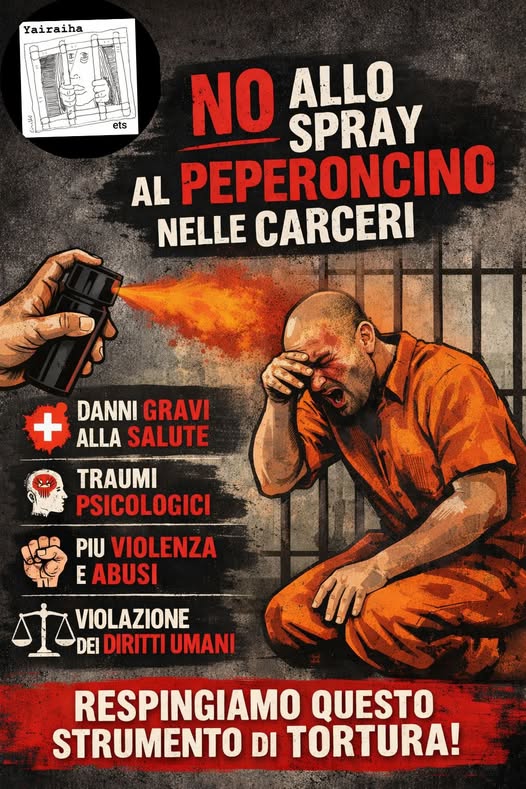 Come Associazione Yairaiha, riteniamo che l’uso di spray al peperoncino in carcere rappresenti una sperimentazione sanitaria di fatto su una popolazione priva di reale possibilità di consenso o tutela. Non è uno strumento neutro, non è clinicamente innocuo e non può essere considerato compatibile con il principio di tutela della salute sancito dall’articolo 32 della Costituzione.